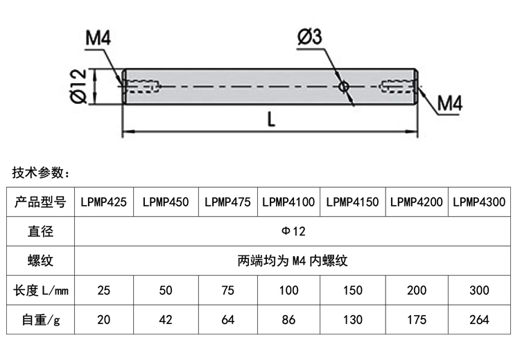 产品详情 LPMP4系列光学不锈钢支撑杆 实验设备转接 在线咨询 产品详情 ● 采用优质不锈钢精磨而成,精度高,美观大方 ● 多种规格可满足不同需要 ● 配合本公司其它调整架使用,通用性强 ● 可沿轴向打标刻度,直观而且美观 本产品主要用途是通过螺纹孔位结合本公司光学平台,实现光学元器件的连接 以满足不同实验的需求,搭建光学系统,光学支撑杆有多种长度,支持定制, 此支撑杆两端均为M4内螺纹,可连接以及转接各种光学元器件满足不同需求。