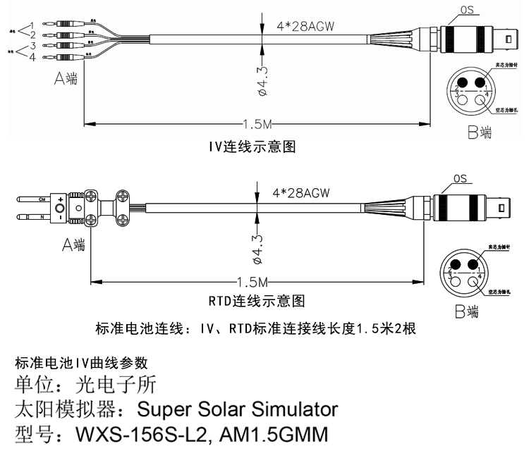 温度传感器,在封装前已进行标定。太阳电池和测温传感器采用四端输出的Kelvin连接接线方式。