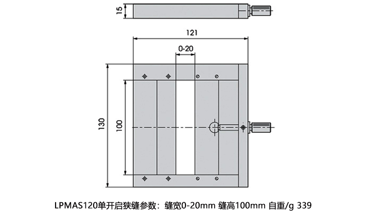 产品详情 LPMAS120手动单开启狭缝 光通量测试 光学实验 遮光挡光调节测试 在线咨询 产品详情 ● 刀片单向开启,细牙螺杆调整不定量 ● 缝高大,缝高100mm ● 缝宽可调,0-20mm LPMAS系列可调式狭缝应用于在光学实验中经常需要用到不同宽度的线光源, 而通过狭缝实现是最常用最方便的方法。莱普科技推出的狭缝具有缝宽连续可 调,可单向,双向以及四向调整,可读数,刃口平滑齐整,开启灵活,精度高, 方便安装。