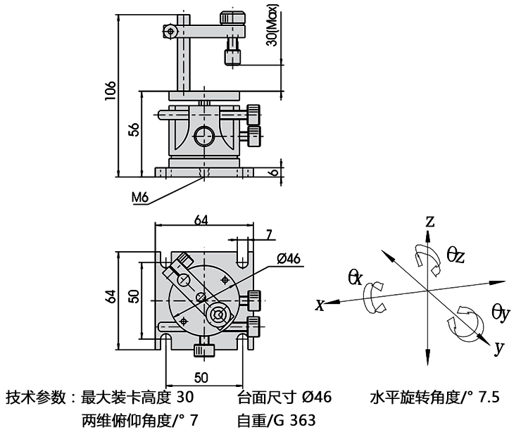 产品详情 LPMMR246三维调整棱镜架 光学棱镜夹持 实验棱镜装卡 在线咨询 产品详情 ● 整体式设计,结构紧凑,可提供三维角度调整 ● 调整螺杆为M6×0.25细牙螺杆,弹簧复位 ● 台面方便弹性装卡装置可稳固装卡棱镜等光学件,装卸方便,弹性可调直至刚性压紧 调整镜架可将镜片进行两维倾斜或多维固定调整。调整螺杆采用M6×0.25细牙 螺杆,提供精细调整。根据不同的镜片装卡方式,不同的装卡直径,不同的调 整螺杆,不同的弹性复位方式分出近百种规格,广泛应用于与光学相关的科研, 教学,工业产品特别是激光打标,激光焊接,激光雕刻,激光划片等激光加工 设备上。
