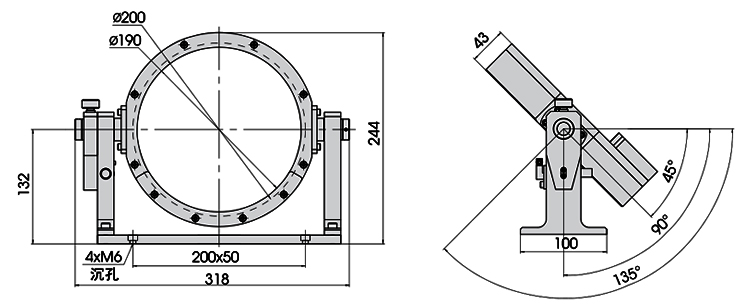 ● 可装卡直径200mm厚30mm的光学元件