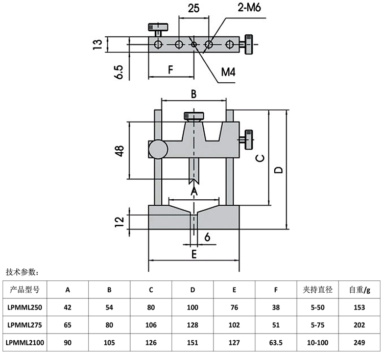 产品详情 LPMML2系列变直径透镜架 光学实验镜片安装座镜片元件夹持 在线咨询 产品详情 ● 可调松紧的弹性夹紧方式,直至刚性夹紧,装卸方便,夹持牢固 ● V形聚四氟乙烯夹头保护镜片 ● V形夹头可以360°旋转,配合V形底座,可夹持不同厚度的镜片或圆柱体 变直径透镜架采用V形聚四氟乙烯夹头设计方式有效保护镜片,可360°旋转。可 夹持不同厚度的镜片或圆柱体。调整镜架根据不同的镜片装卡方式,不同的装卡 直径,不同的调整螺杆,不同的弹性复位方式分出近百种规格,广泛应用于与光 学相关的科研,教学,工业产品特别是激光打标,激光焊接,激光雕刻,激光划 片等激光加工设备上。