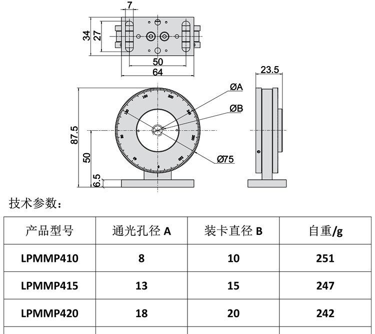 产品详情 LPMMP4系列光学偏光调整镜架 光学实验镜片安装座偏光透镜支架 在线咨询 产品详情 ● 可装卡偏光镜片,压圈锁紧 ● 采用精密轴系旋转调整,定位稳定、可靠 ● 周圈360°刻划,最小读数2° 偏光镜架可将镜片进行两维倾斜或多维固定调整。调整螺杆采用细牙螺杆,锁 紧手轮等固定方式,提供精细调整。根据不同的镜片装卡方式,不同的装卡直 径,不同的调整螺杆,不同的弹性复位方式分出近百种规格,广泛应用于与光 学相关的科研,教学,工业产品特别是激光打标,激光焊接,激光雕刻,激光 划片等激光加工设备上。