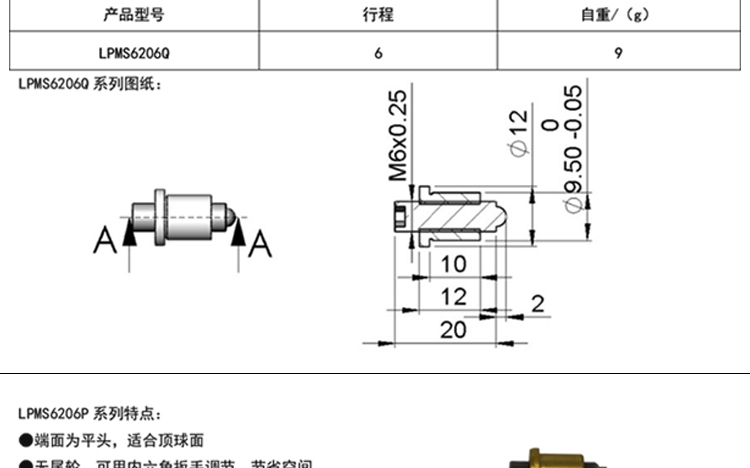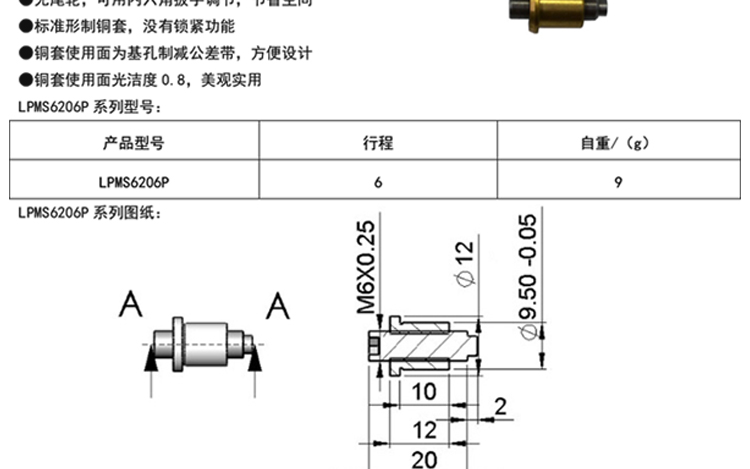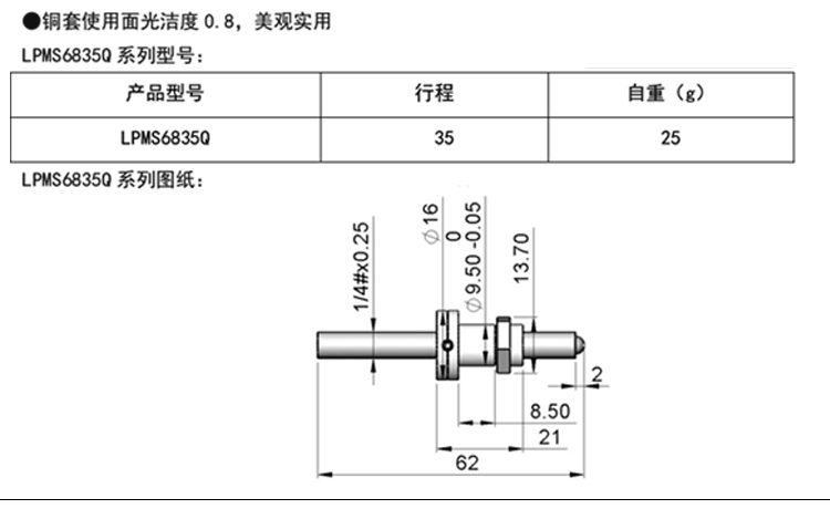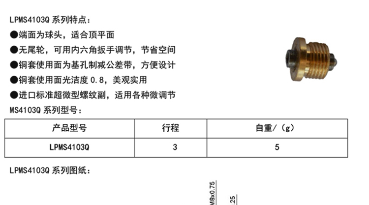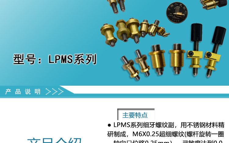● LPMS系列细牙螺纹副,用不锈钢材料精研制成,M6x0.25超细螺纹(螺杆旋转一圈,轴向只位移0.25mm),